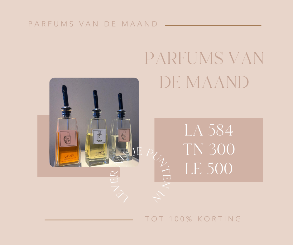 Vanaf nu zetten we elke maand drie van onze favoriete geuren in het zonnetje: een damesgeur, een herengeur én een exclusive unisex geur. En het leuke is: op deze parfums mag je ook je spaarpunten inleveren!
